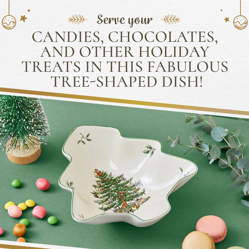 Spode Christmas Tree Serving Dish | 9 Inch Christmas Tree Shaped Serving Bowl for Candy, Nuts, Chocolate and Holiday Goodies | Made of Fine Earthenware | Christmas Home Décor | Dishwasher Safe