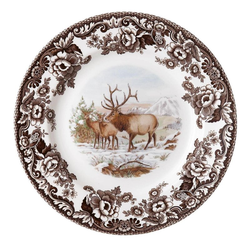 - Elevate your dining experience with this Spode Woodland Salad Plate featuring a majestic Elk design. Crafted from fine earthenware in England, it exudes rustic elegance.