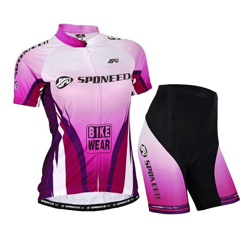 sponeed Women's Road Cycling Jersey Compression Short Pants Padding US L Purple Multi