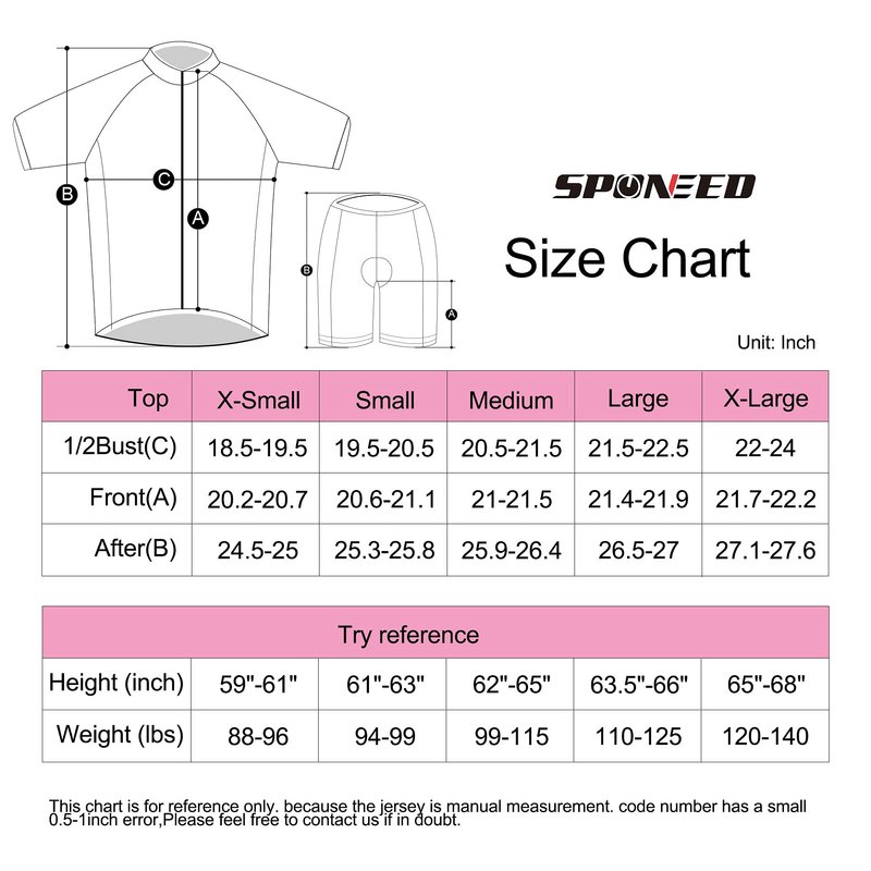 - Cycling jersey women shorts sets tag size is approach to US normal, please check the size chart before you place order, refer to the height, weight and waist.
