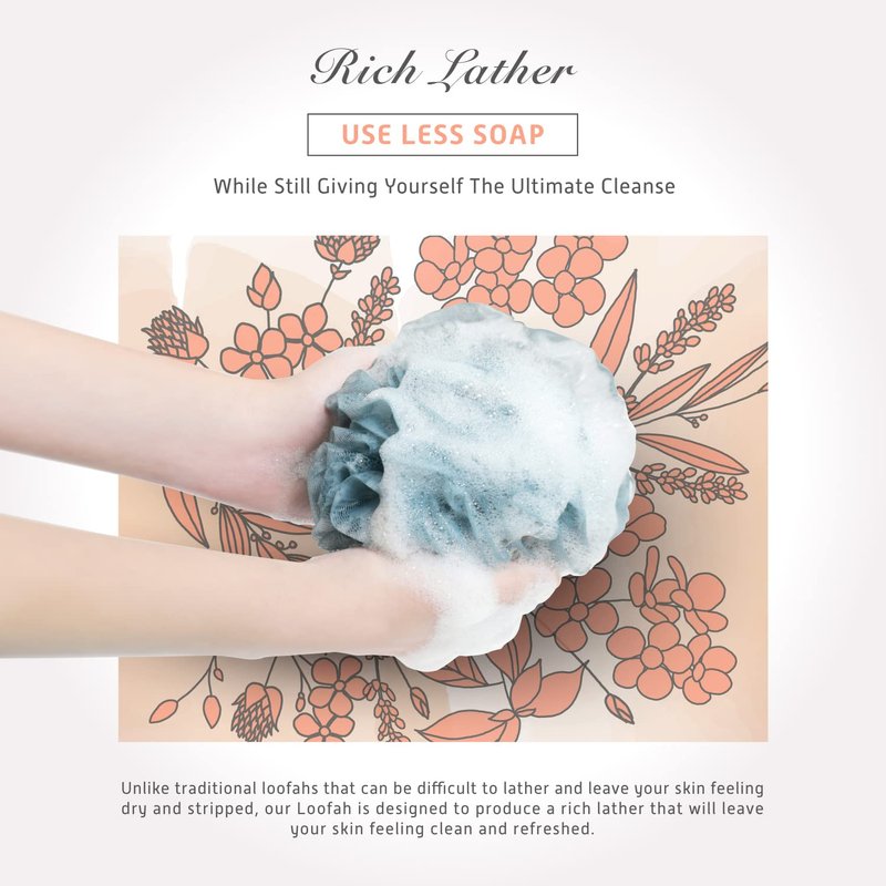 - RICH LATHER - Create a rich, foamy lather when used with your favorite soap or body wash. This loofah helps to whip up a thick and luxurious lather like never experienced before.