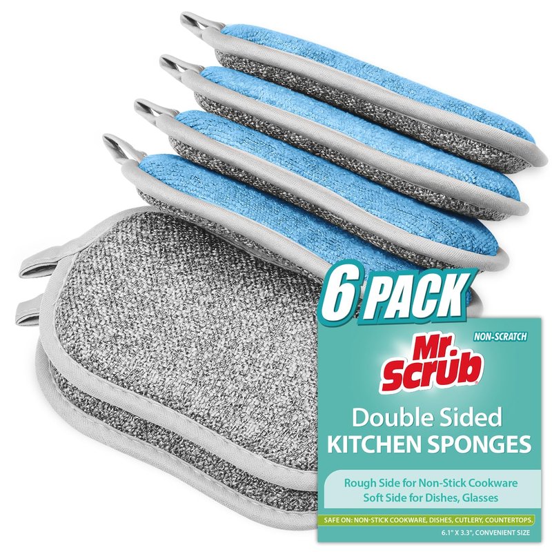 Sponges Kitchen Dish Sponge for Washing Dishes Cleaning Kitchen, All-Purpose, 6 Pack, Non Scratch, Rough Scrubbers Side for Non-Stick Cookware, Soft Microfiber Scrub Side for Dishes, Mr. Scrub