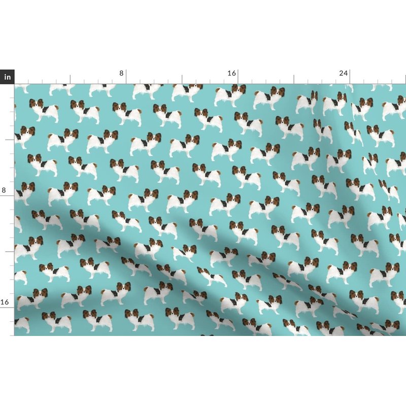 Spoonflower Fabric - Papillon, Dogs, Aqua, Toy Breed, Toy Spaniel, Blue, Puppy, Pet Printed on Denim Fabric Fat Quarter - Bottomweight Apparel Home Decor Upholstery