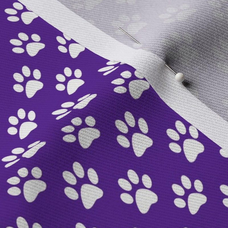 Spoonflower Fabric - White Paw Prints Purple Animal Cat Dogs Mini Small Tiny Micro Pet Printed on Denim Fabric Fat Quarter - Bottomweight Apparel Home Decor Upholstery