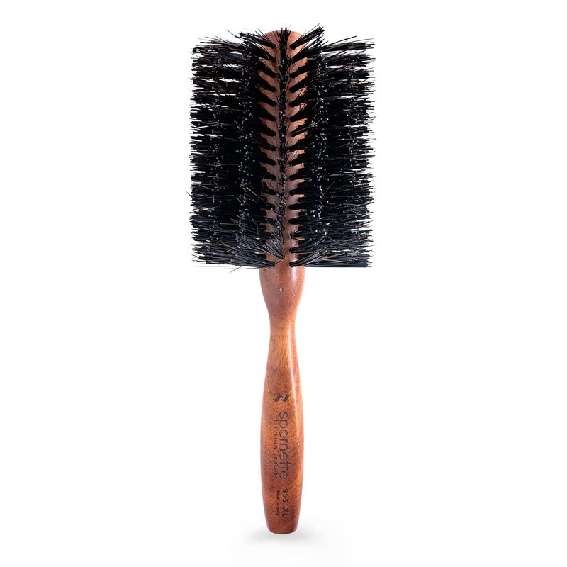 Spornette Italian Rounder 3 Inch Hair Brush (#955-XL) - Round Double Density Boar Bristle Brush With Wooden Handle For Blow Drying, Styling, Volumizing, Straightening And Curling Medium To Long Hair