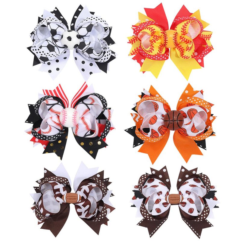 - Sports ball class hairpin Hair Clips Bow Sports Bow Hair Barrettes Clips Girls Baseball Bow Hair Pin.