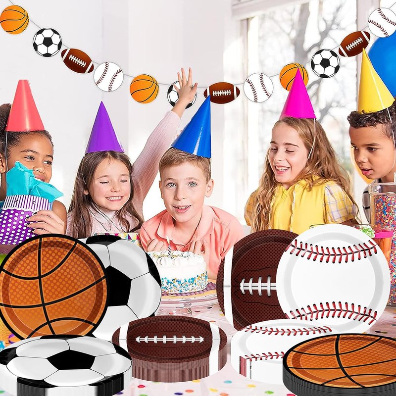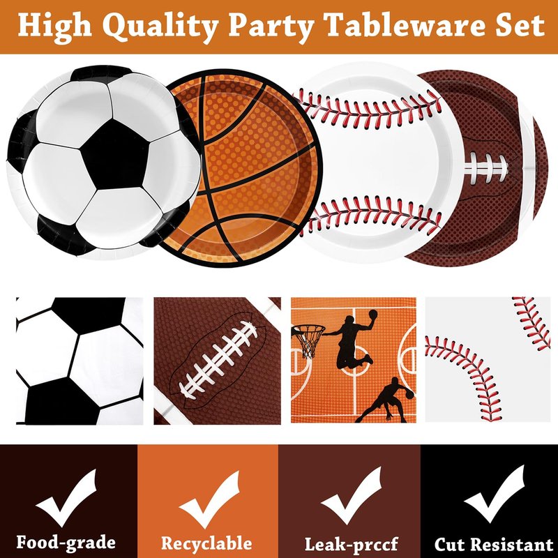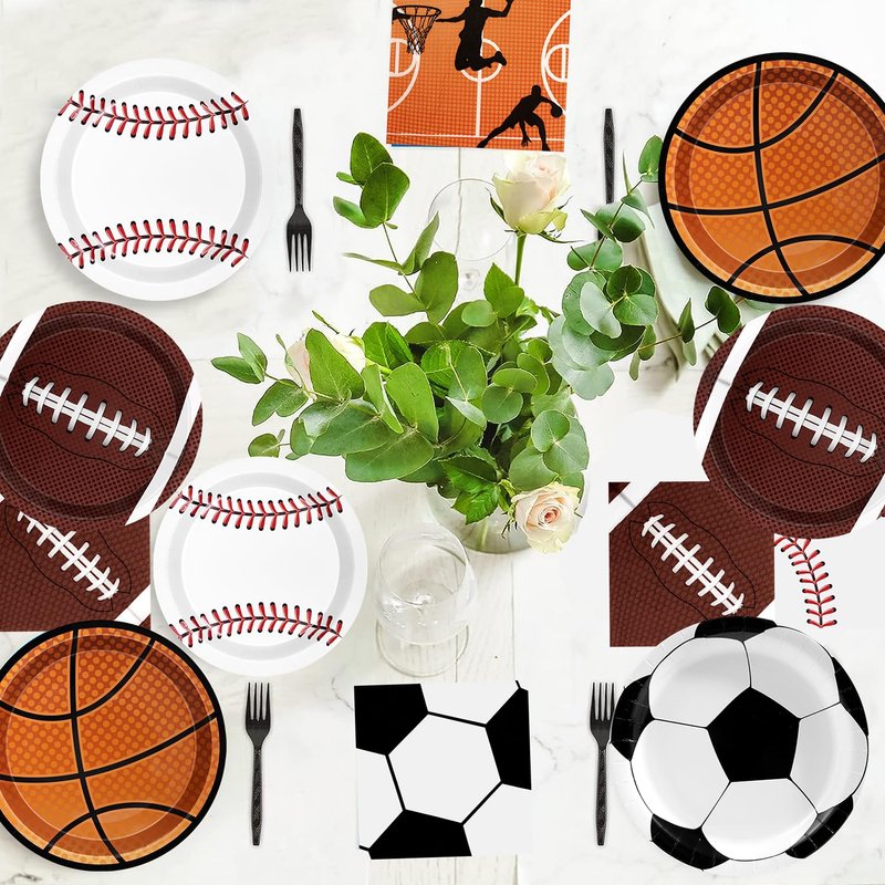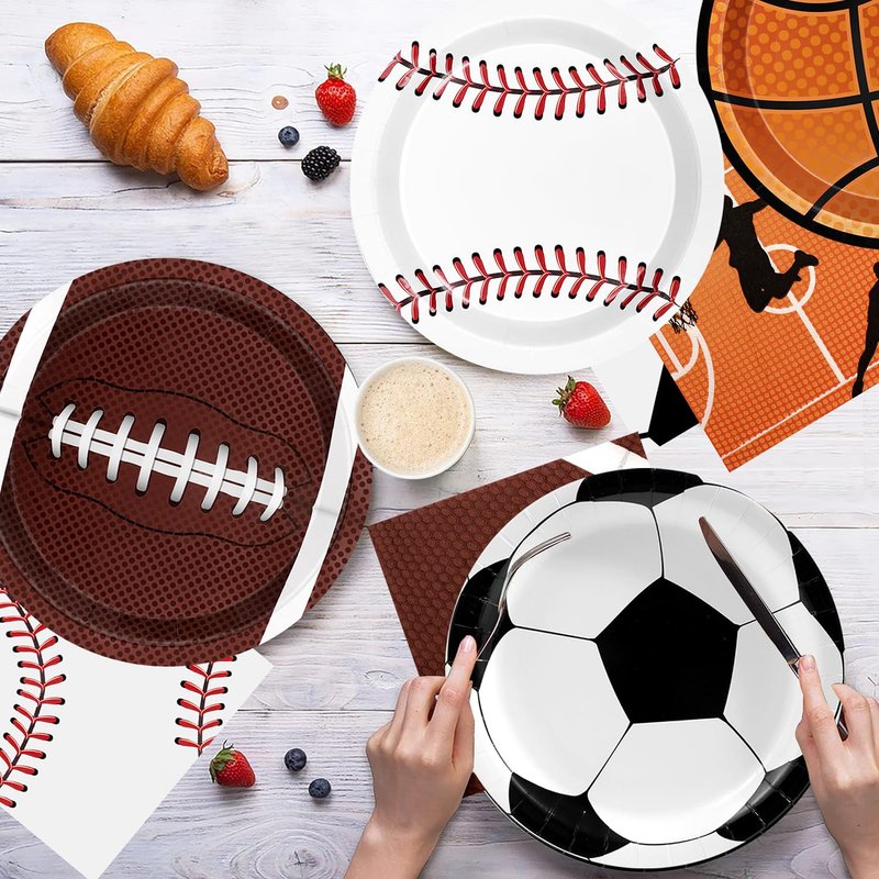 - Sports Party Supplies:Sports theme party decorations dinnerware set is designed with sports theme like football basketball baseball soccer is the perfect choice excellent for sports fans. That will be the ideal addition for a sports-themed party at birthdays, schools, outdoor, and home