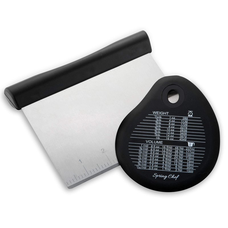 Spring Chef - Bench Scraper, Stainless Steel Scraper, Pastry Scraper, Pizza and Dough Cutter, With Bonus Bowl Scraper, Black