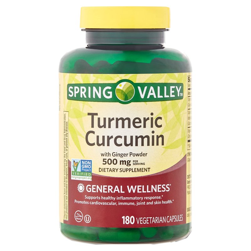 Spring Valley Turmeric Curcumin 500mg with Ginger Powder, General Wellness, 180 Capsules