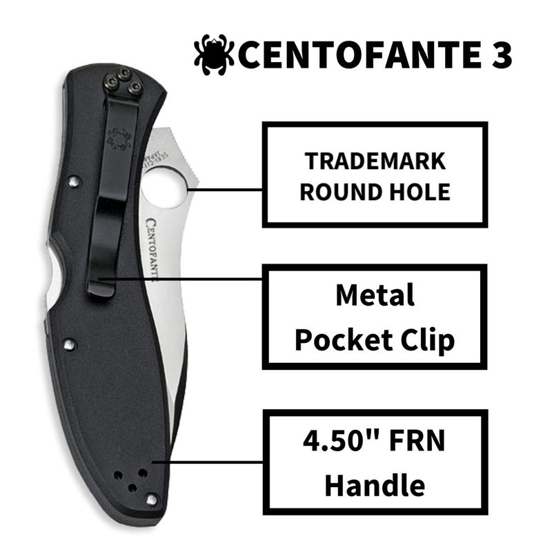 - Ultra-Lightweight: The Centofante 3 has a thin-profiled, lightweight FRN Handle. Two channels are furrowed out of the handle for better grip and a Palladium silver Spyderco bug is inlayed into its surface.