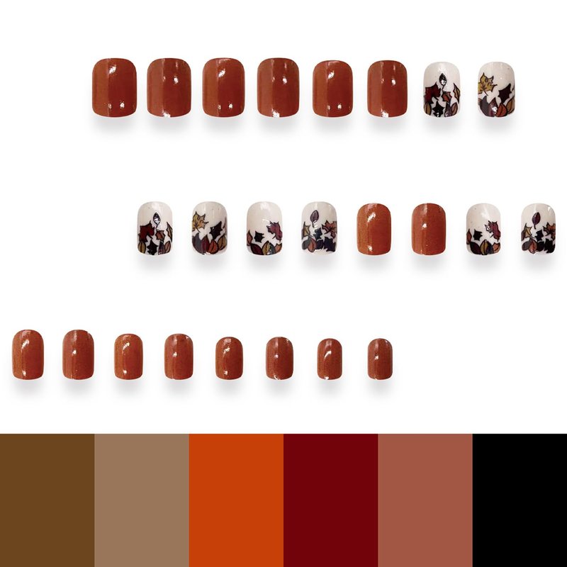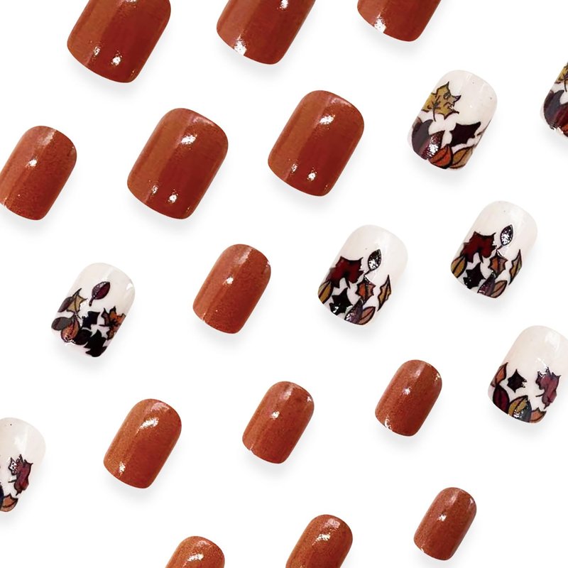- Package Includes:24 PCS brown Press on Nails with 12 size & A Nail File & Alcohol bag & Jelly Glue Stickers & Wooden stick.