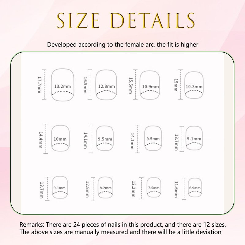 - LASTING EFFECT: You can use the nail adhesive stickers we provide for you (with nail adhesive stickers, artificial nails can be reused). However, the effect of nail glue stickers is not as good as liquid nail glue. If you want your fake nails to last longer, you can use liquid nail glue, the effect lasts for 1-2 weeks.(Product packaging does not contain liquid nail glue)