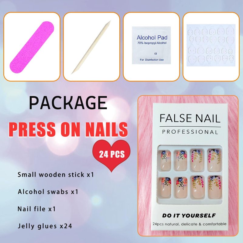 - 💗You Will Get: The package contains 24 pieces of short press on nails square of different sizes, 1 mini nail file, 1 small wooden stick, and 1 piece of nail glue sticker. (Jelly glue can last about 3 days or more, glue remains longer)