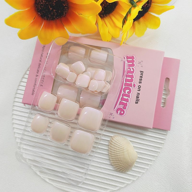 1.Use our nail file to gently polish the toe nail press ons and fake toe nails for a better fit.