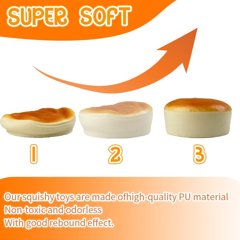 - √🍞BEST GIFT - Your kids will not stop squeezing this one and only super soft cuddly cheesecake toy. Perfect for party favours, Valentine's Day, Easter eggs, birthdays, hard work rewards, Thanksgiving, Christmas and New Year gifts.