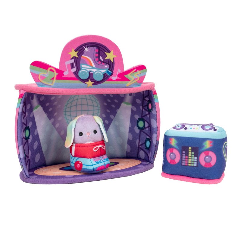 Squishville by Original Squishmallows Rock and Roller Disco Playset - Includes 2-Inch Danya The Bunny Plush, Roller Skates, DJ Booth, and Skating Rink Playscene - Toys for Kids
