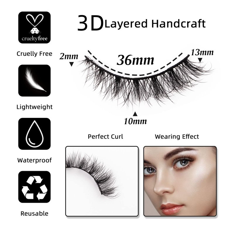 - Lightweight Comfort: Made from high-quality synthetic fibers, our lashes offer lightweight comfort that lasts all day and night, ensuring a comfortable wear without weighing down your eyelids.
