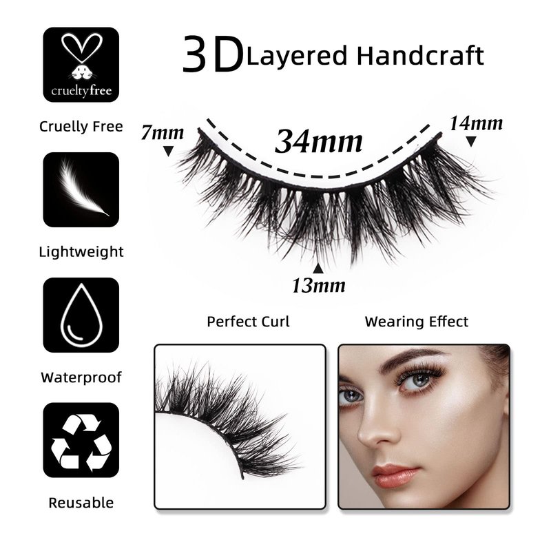 - Lightweight Comfort: Made from high-quality synthetic fibers, our lashes offer lightweight comfort that lasts all day and night, ensuring a comfortable wear without weighing down your eyelids.