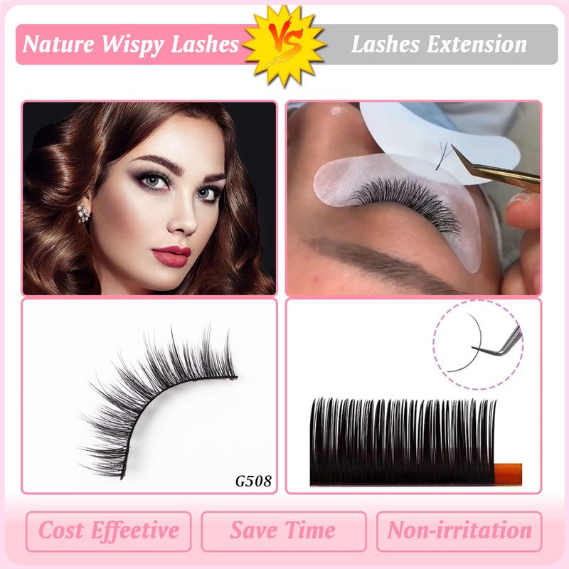 Crafted with precision and care, our short lashes wispy boast a unique cat-eye shape that effortlessly elongates and enhances the natural curve of your eyes. Each natural lash is delicately handcrafted to ensure a seamless blend with your own lashes, creating a mesmerizing and natural-looking finish.