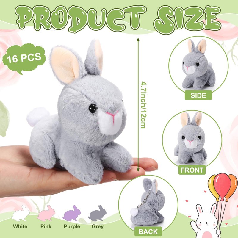 - Cute Plush Set: package includes 16 pieces of stuffed rabbits, with 4 sweet colors, like pink, white, purple and gray, 4 pieces for each colors; Sufficient quantity and colors to meet your various demands, and you can share them with friend and family
