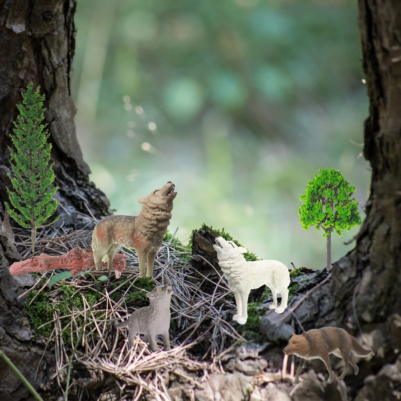 - Make up Woodland Decor: the wolf figurine toy is in different sizes and colors, mainly black, white and gray; The toy trees with 3 styles, and 4 pieces of wood roots figurine, this whole set of animals figurines model trees can help you create woodland decoration for home, party, bedroom and more