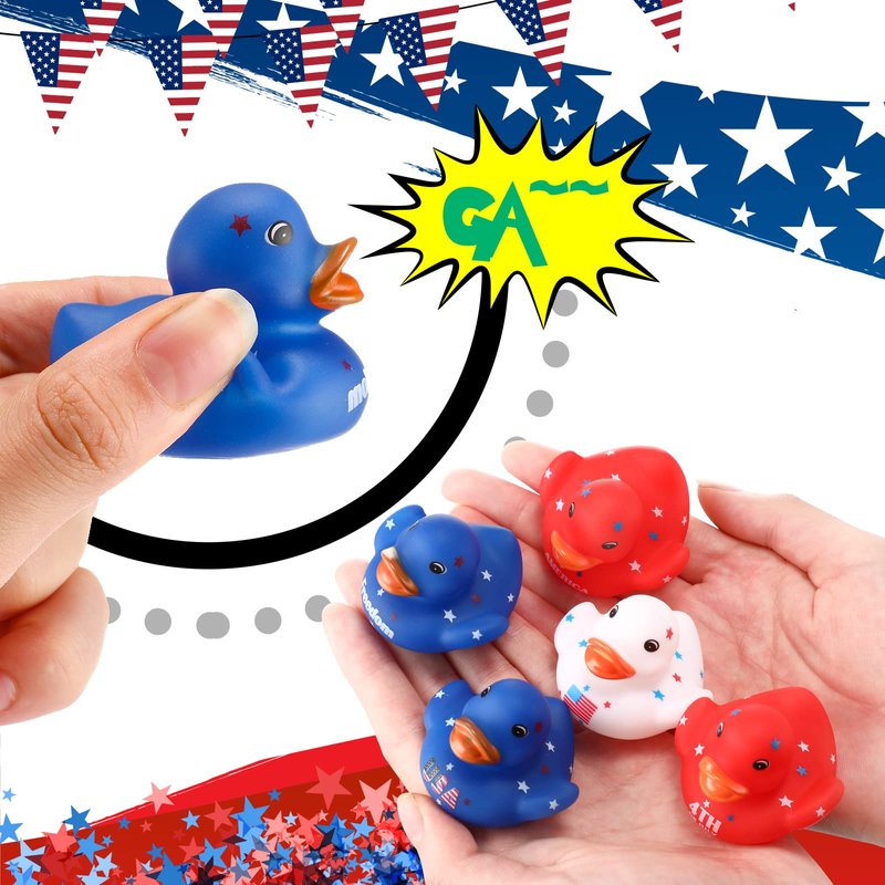 - Rich Rubber Ducks for 4th of July: the package comes with 50 pieces of patriotic ducks with 5 different styles, compact and delicate, available in sufficient quantity and rich colors to decorate Independence Day; Enough for you to share with playmates, classmates or family members