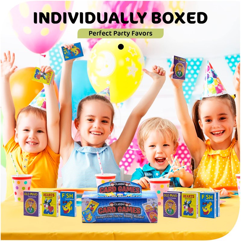 Srenta Kids Card Games Bulk – 12 Pack Classic Card Games for Kids Ages 4-9, Multi Pack Set Includes: Hearts, Go Fish, & Old Maid Playing Cards for Family Game Night, Party Favors & Classroom Prizes
