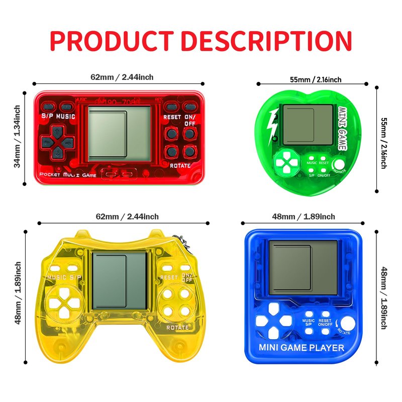 - 🎮 ARCADE PARTY FAVORS VIDEO GAME KEYCHAIN 🎮 This video game keychain has built-in 26 classic games of "numbers" and "letters", each with 99 different levels of difficulty levels. This set will bring your kids more happiness and fun!