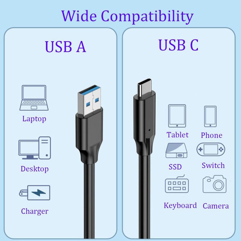 - 【USB3.2 Gen2 10Gbps Data Transfer】 Our USB3 Type A to C Cable supports up to 10Gbps data transfer speeds. You can transfer large files quickly and efficiently with this USB3.2 Gen2 cable.