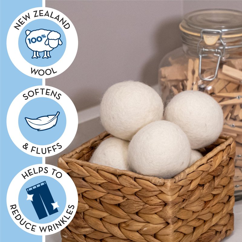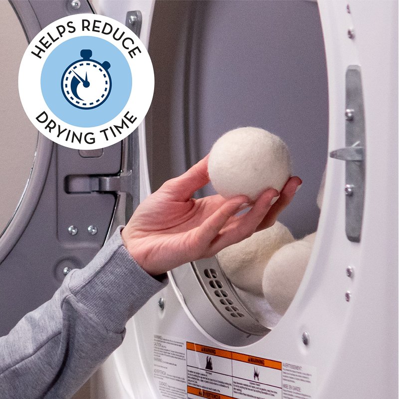 - Add these reusable wool dryer balls to your laundry supplies; they offer faster drying times by lifting and separating laundry for better airflow