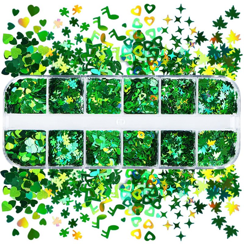 Package: 12 Grids/Set St. Patrick's Day Nail Glitter Flakes