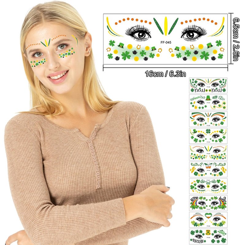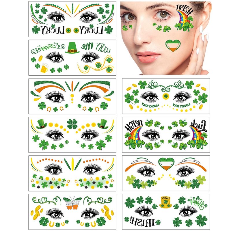 St Patrick's Day Temporary Tattoos,10 sheets different Shamrock Tattoos to help you better celebrate this holiday. St Patricks Day Face Tattoos are essential st patricks day decorations to adorn your Irish parties and parades!