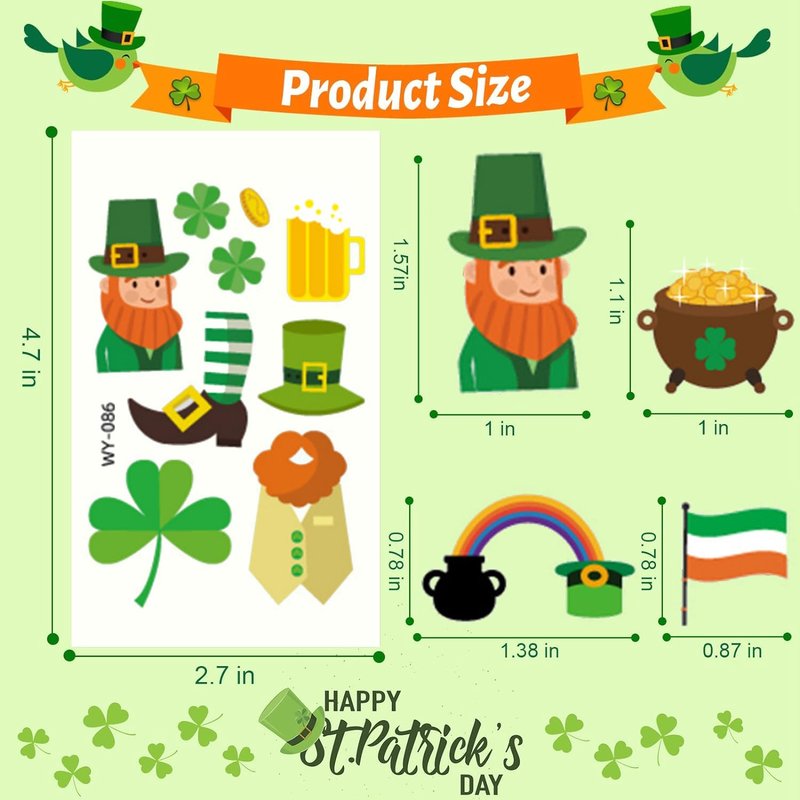 - 🍀【St Patricks Day Accessories】These tattoos can be stuck well on your arm, face, hand, or anywhere you like (Be careful for sensitive skin). a fun and safe decorations for your Irish pride at St. Patricks Day party, perfect gifts for kids and women.