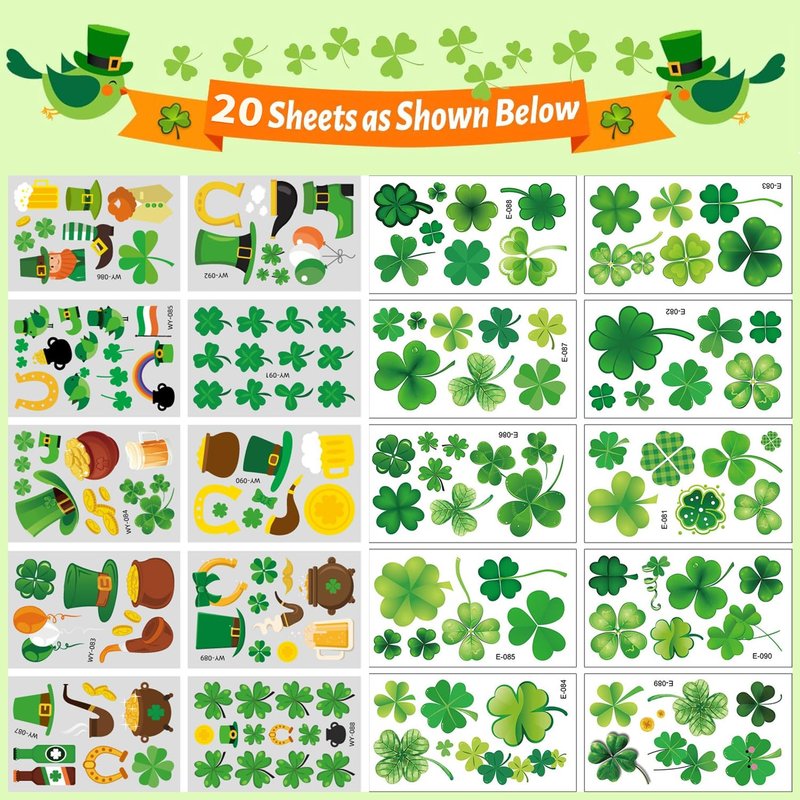 - 🍀【St Patricks Day Tattoos】The package contains 20 sheets St Patricks Day ,Enough quantities for fun,which make you can share shamrock tattoos,face st patricks day body tattoos with your friends and extended family. Total 110 pieces of st patricks day stickers are designed with unique and creative patterns to match your friends/family st patricks day decorations. The perfect addition to your holiday supplies, and st patricks accessories for women.