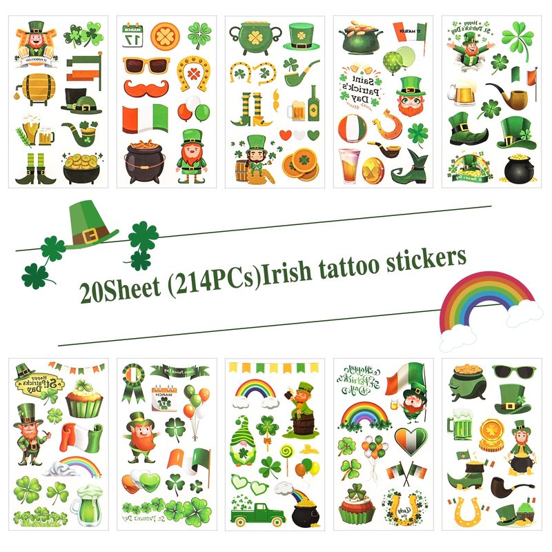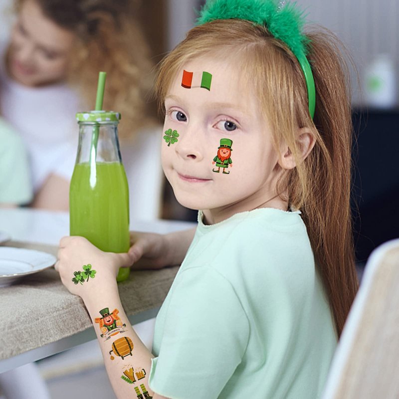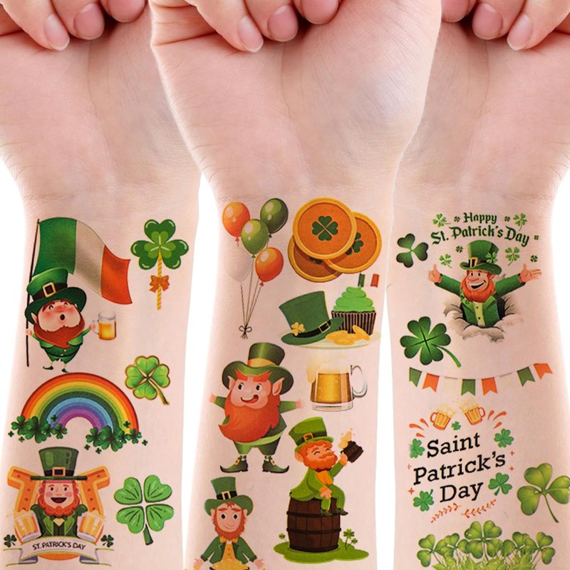 - Suitable for children and adults: The large number of different Irish temporary tattoos keeps the kids entertained and is fun for adults too. Pass on your St Patrick's Day tattoos to all your friends, classmates, family, colleagues and more. Have fun with them on St Patrick's Day.
