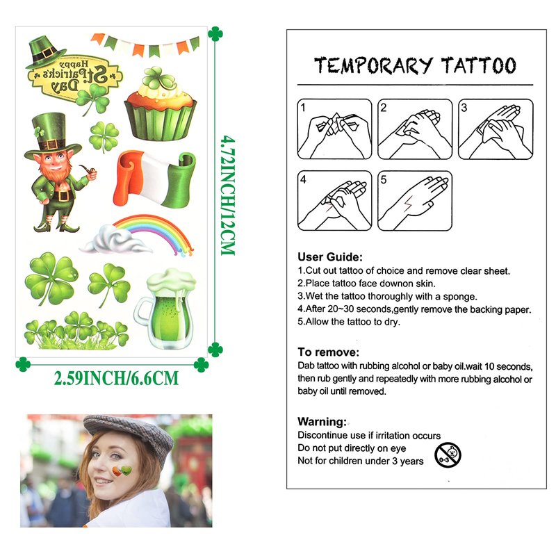 - After Sales Service: We value your shopping experience, if you have any questions about our St. Patrick's Day tattoos please feel free to contact us.
