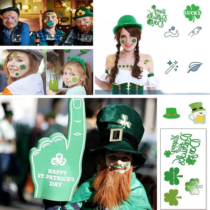 - 🍀 Safe Waterproof Material: These tattoos are designed for body use, is waterproof and sweat-proof, and safe for adults and kids. It is a good choice for St. Patrick's Day party.