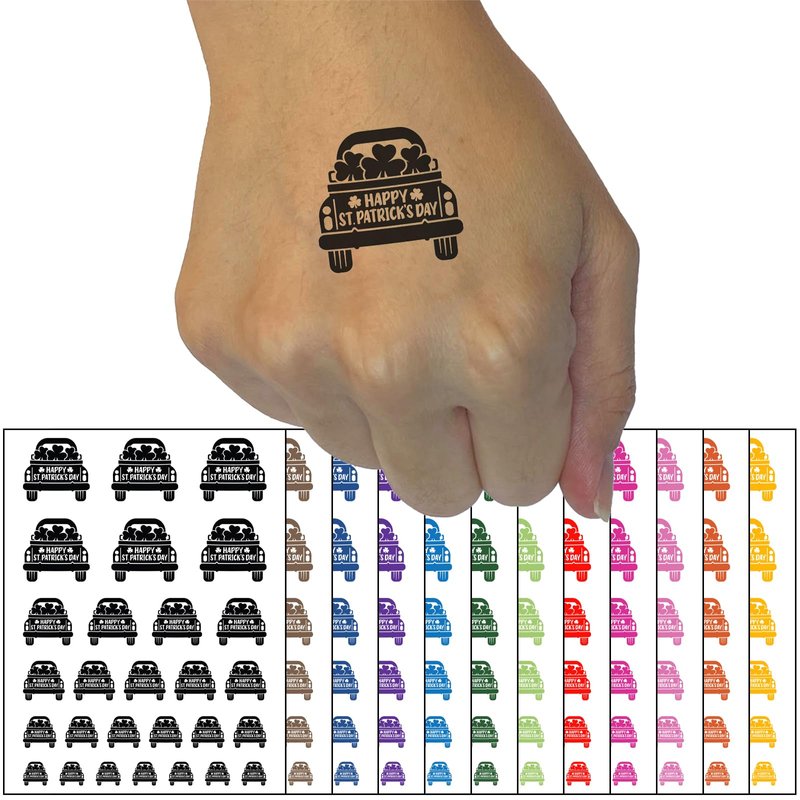 St. Patrick's Day Truck Temporary Tattoo Water Resistant Fake Body Art Set Collection - Purple (One Sheet)