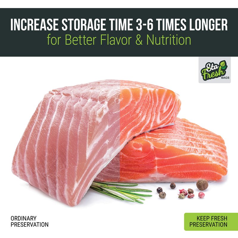 - ENJOY THE FRESHNESS OF YOUR FOOD AT A LATER DATE: Sta-Fresh vacuum sealer bags allow your food to keep the same delicious taste whenever you need to store your leftovers, fruits, meal preps, and even meats such as venison. Whether it's long-term storage or you are looking to enjoy your meal later in the week, these bags will help your food maintain flavor, freshness, and nutrients. Sta fresh air-tight vacuum-sealed bags will preserve the essential ingredients that make your food delicious.