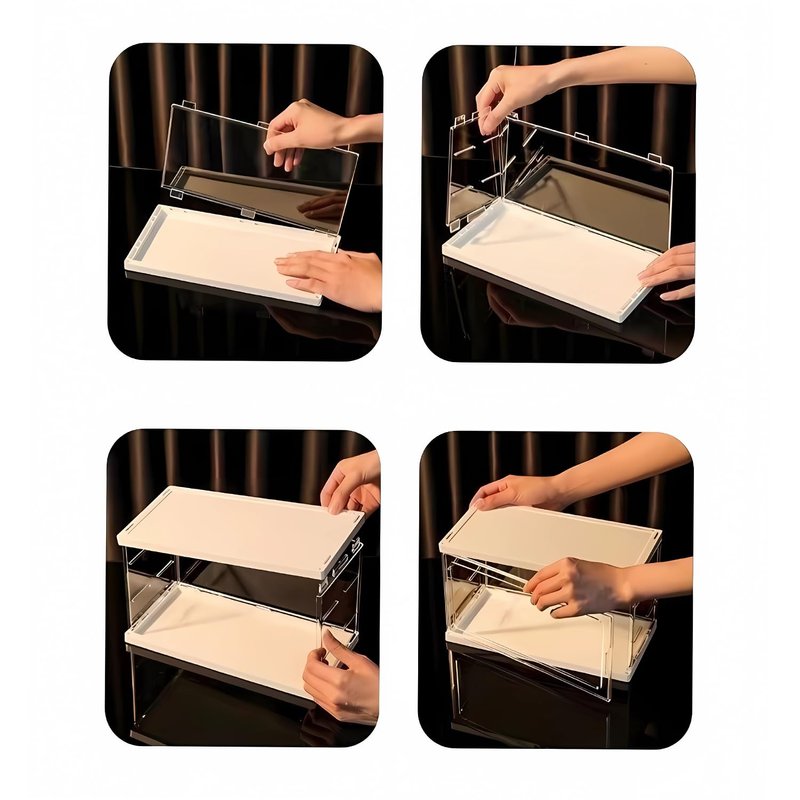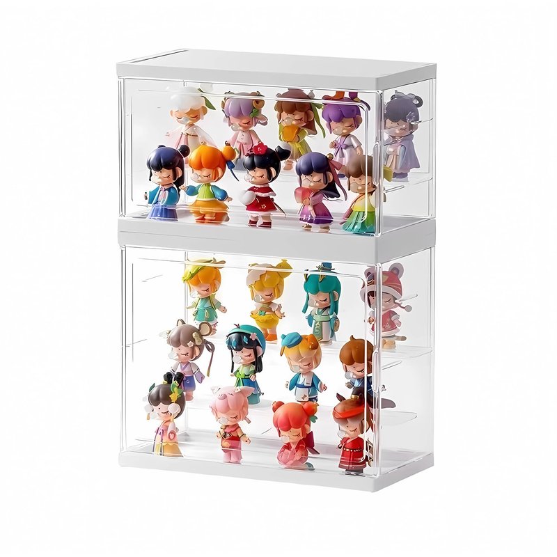 Introducing our Stackable Acrylic Display Case With Shelves, the perfect solution for showcasing and organizing your beloved collectibles. Made from high-quality transparent acrylic, this display case offers a clear and unobstructed view of your action figures, Popmart, blind box, Lego, mini figures, dolls. With its unique stackable design, you can easily expand your collection space by adding more cases as needed. Not only does this display case provide a visually appealing presentation, but it also offers reliable dustproof protection. Your valuable items will remain safe and free from dust, dirt, and damage, ensuring their longevity. The versatile organizer functionality allows you to neatly arrange and display your handmade figures, toys, and other cherished items, keeping them easily accessible and well-organized.