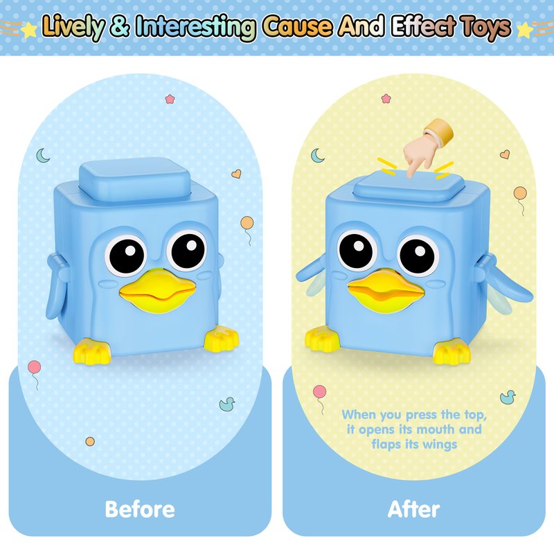 - Toddler Interactive Cause and Effect Toys: Colorful and novel shape is eye-catching, which helps stimulate baby's senses and exercise hand-eye coordination. Fun and easy to operate, easily mobilize baby's curiosity and help them understand the cause and effect relationship of the game. Cultivates and improves baby's fine motor skills and attention span while enhancing parent-child bonding