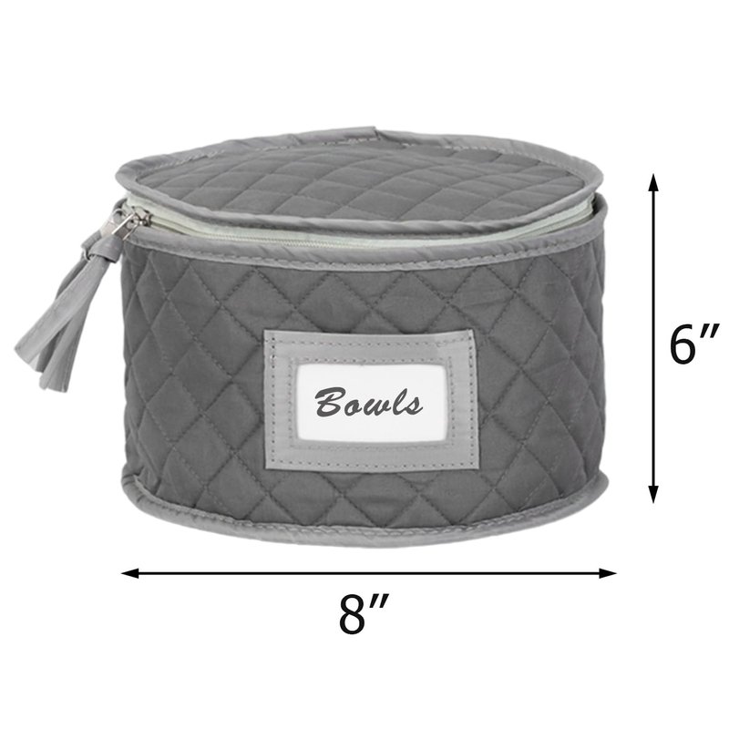 StackStorePlusMore China Storage Quilted Case for Dessert Plate, Bowls, Small Plate or Saucer - 8" W x 6" H - Gray - Includes 12 Felt Separators