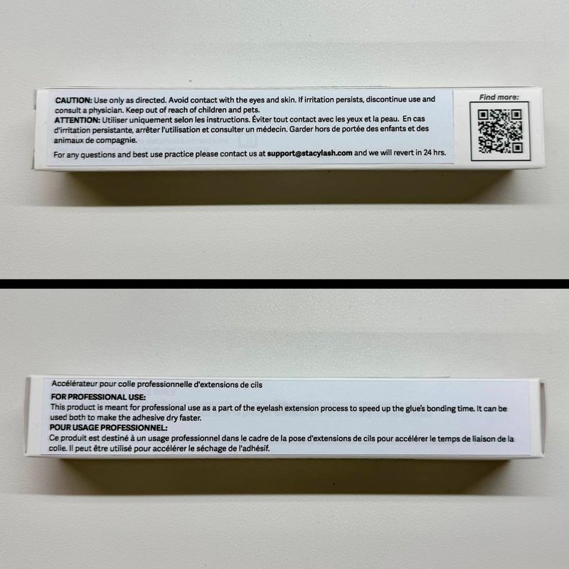 Stacy Lash Super Booster is the new innovative product on the lash market.An absolute must-have item among lash extension supplies for every lash artist who wants to become more professional and be trendy! We are happy to announce that our eyelash glue accelerator will be an indispensable helper in many difficult situations, which lash techs face every day.HOW DOES OUR BOOSTER WORK?When the booster is applied, the lash glue dries up straight away firmly bonding extensions together, which prevents your fans from closing up. Thus, our Super Booster accelerates the curing process of your lash adhesive.As our lash extension glue activator significantly speeds up the bonding time, it could be a great option for your sensitive clients. You can still use milder adhesives without compromising your work speed, as the booster will make them dry much faster.HOW TO USE:Place the necessary amount of product on the base of the eyelash extensions strip. Wait for 30 seconds for it to dry. This will help to prevent your lash fans from closing. You can also use this product after the pre-treatment procedure (after using lash shampoo for lash extensions and eyelash extension primer) by applying our Glue Accelerator to the natural lashes with the help of a micro brush. However, be careful not to overdry your client's natural lashes, as it may lead to retention issues.STORAGE & SHELF LIFE: Store in a cool, dark, and dry place. Use no later than 6 months after opening.CAUTION: Do not leave the product under direct sunlight. Keep out of reach of children and pets. Ingredients: Acs Reagent Grade Water, L-Arginine, Propane-1,2-diol, H-leu-OH, Citric Acid, Vitamin A palmitate, Halite