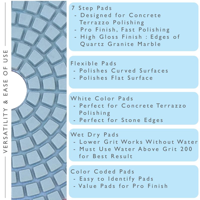 - Works great on Granite, Concrete, Marble, stones, glass Polishing