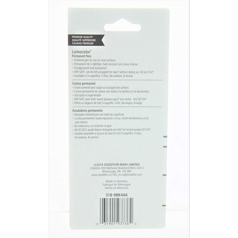 Staedtler Lumocolor Permanent Pen 318-9 Fine 0.6mm Line - Black (Pack of 4)