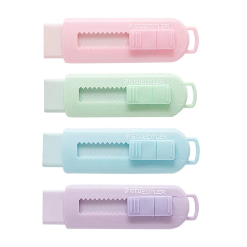 Staedtler Sliding retractable pencil eraser with plastic sleeve, assorted soft pastel color 4 Pack