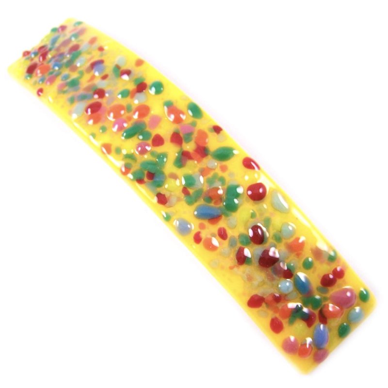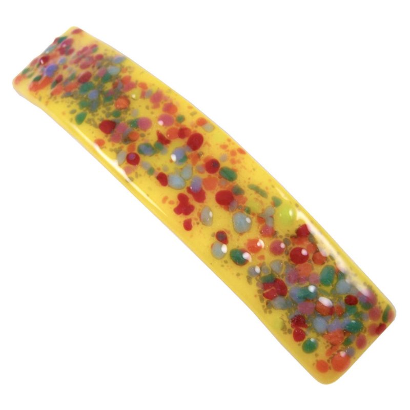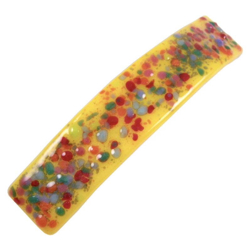 Stained Glass Barrette - 3.5" 9cm - Circus Confetti Yellow with Rainbow Speckles Polka Dot Slide Clip Hair Accessories
