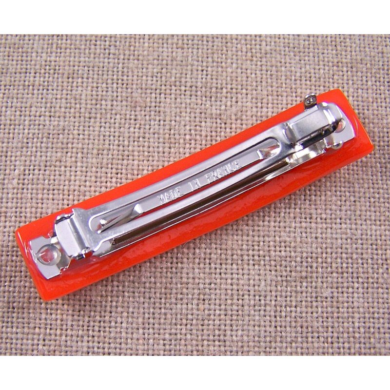 Stained Glass Barrette - Small 2.5" 65mm - HOT Molten ORANGE Safety ORANGE Poppy Slide Clip Hair Accessories....SOLD INDIVIDUALLY. This barrette is made from Tiffany style glass... LIGHT WEIGHT AND COMFORTABLE: We try to keep our barrettes light weigh and very comfortable to wear. We want you going for them every day~! Buy as singles or as pairs (when available, if you don’t see 2 of these in stock, we might be able to make a pair for you depending on our glass inventory). ABOUT OUR TIFFANY BARRETTES: This barrette is made from Tiffany style sheet glass... Think stained glass windows and lamps.... YUP, that’s the stuff. This is not the metallic dichroic glass we normally work with. We had some of this Tiffany glass in the closet so we made some of these “Tiffany” stained glass barrettes, and BAM... SOLD. Tried it again, and the same thing happened. It became immediately clear that people want attractive, and well-made barrettes in a variety of colors and finishes. So here you go~! We’re here to provide them. If you need multiples of specific barrette, or would like to see us make something in another size, send us a custom order request. Maybe we can hook you up. Look for our barrettes in 2.5" Small, 3.5" Large, and 1" Tiny. Available in hundreds of colors. It may just take a while for us to get them loaded into this shop. If you don't see what you want, ask us. Let's talk.