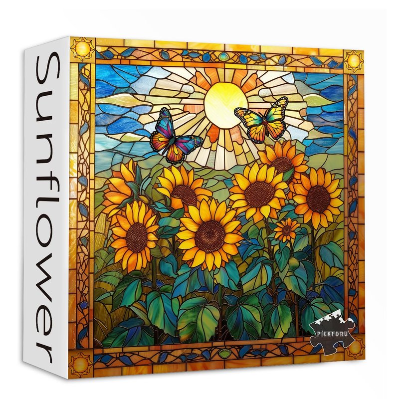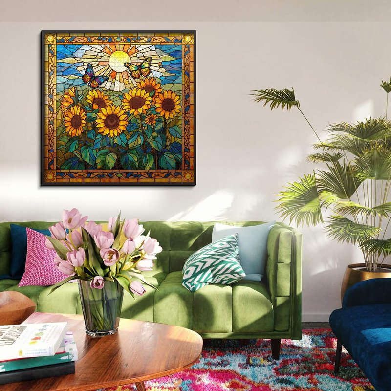 Stained Glass Puzzles for Adults 1000 Pieces and up, PICKFORU Sunflowers Puzzle as Home Decor, Butterfly Flower Puzzles as Home Decor