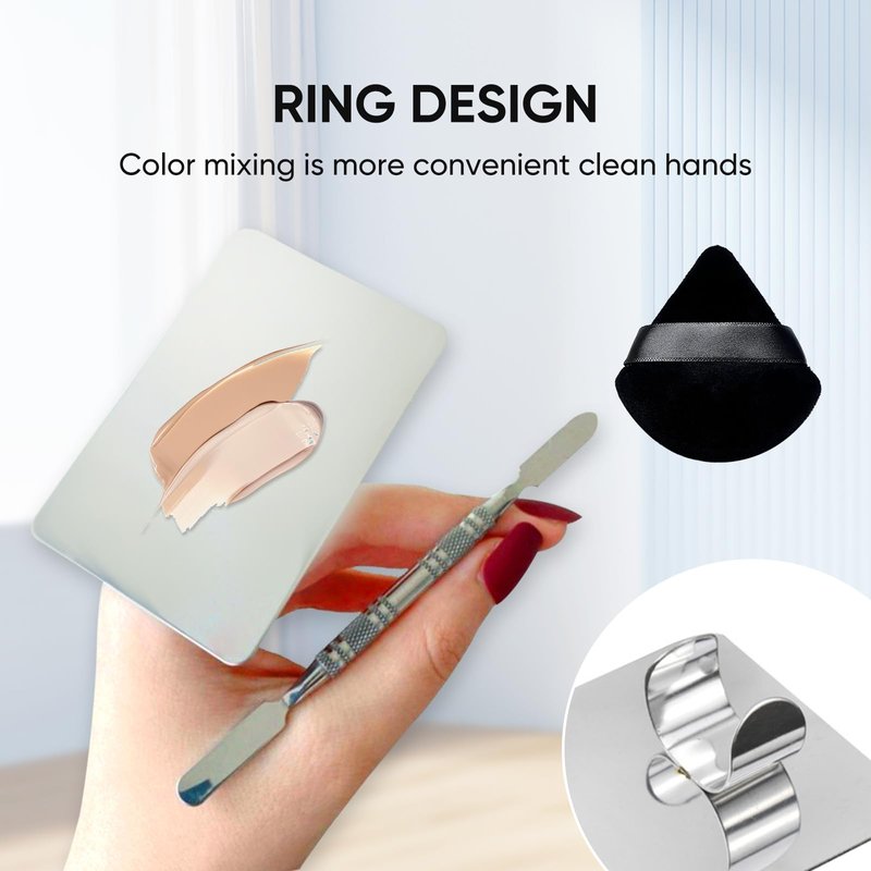 - Ring style palette:Ring style of the foundation palette size is 4.2X3.2cm /1.65*1.25 inches,The width of the ring is 0.82 inches.It is lightweight, compact and easy to carry, but can fully meet your color matching needs. The mixing plate has a finger design, wear it on your hand when using it, which is convenient for work, improves efficiency, can accommodate more colors, rectangular shape design.